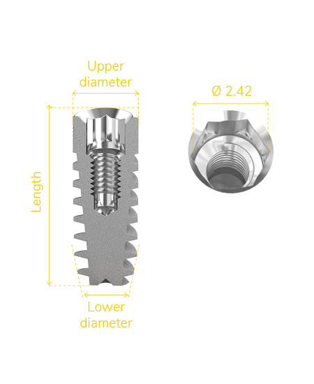 Implants exhibit a spiral-tapered structure featuring sharp threads and a prominent tapered core. Their distinctive design incorporates sharper cutting flutes, enabling a gradual and controlled process of slicing through and expanding the bone during implantation. This unique approach enhances the stability and integration of the implant with the surrounding bone tissue. The gradual widening minimizes potential risks and ensures a smoother healing process, leading to improved patient outcomes. With their innovative features, these implants represent a significant advancement in implant technology and contribute to enhanced effectiveness and reliability in various medical and dental applications.